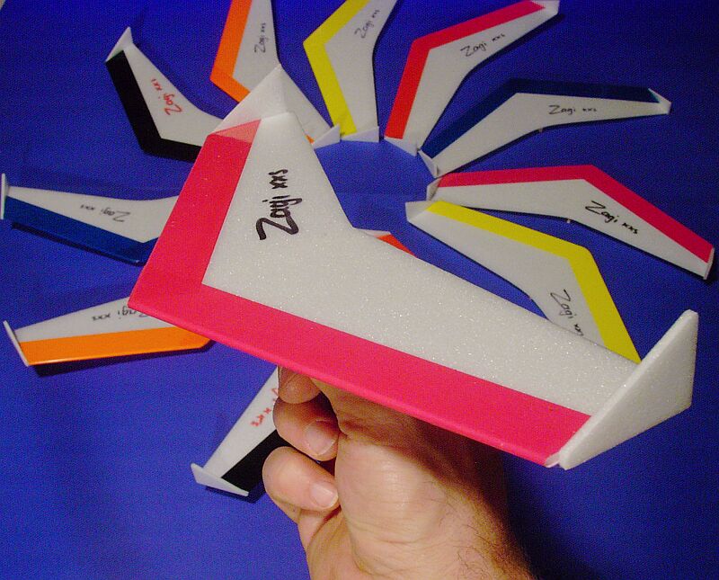 Durch vorsichtiges Verbiegen der Hinterkanten kann die Flugrichtung der Mücke verändert werden: